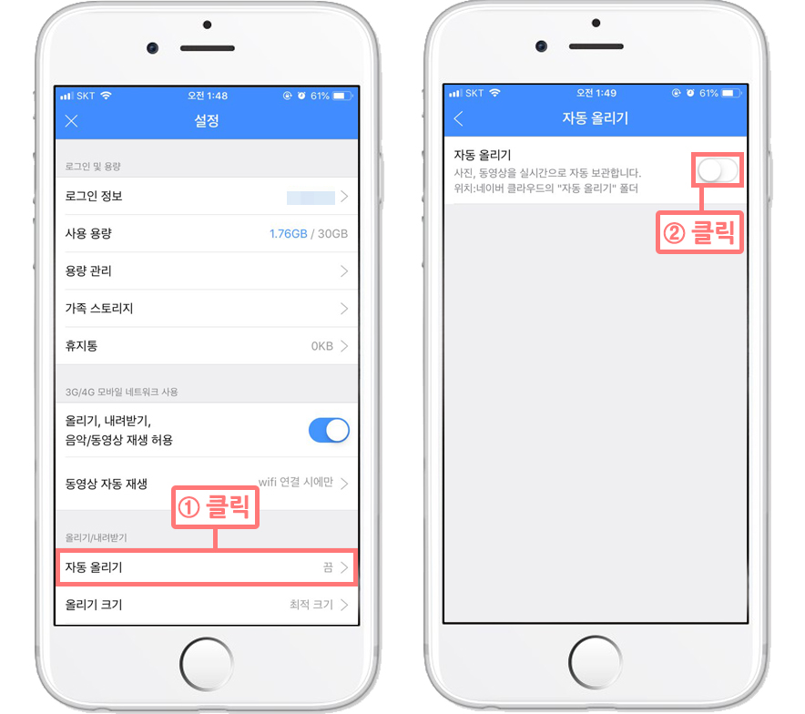 네이버클라우드 사진,동영상,파일 자동올리기 설정하기