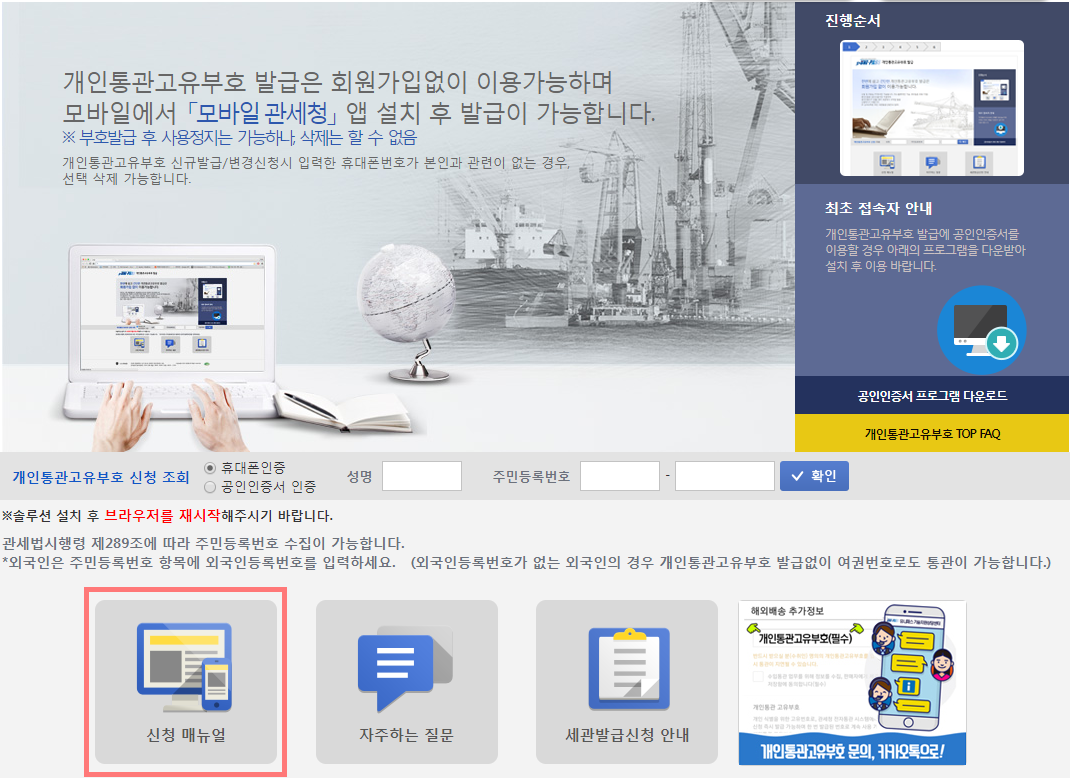 개인통관고유부호 발급 및 조회 간단방법