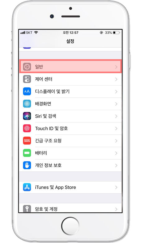 ▲ 앱이 열리면 조금만 밑으로 스크롤을 하여 내려준 다음 이번에도 톱니바퀴 모양인 [일반] 탭을 눌러줍니다.