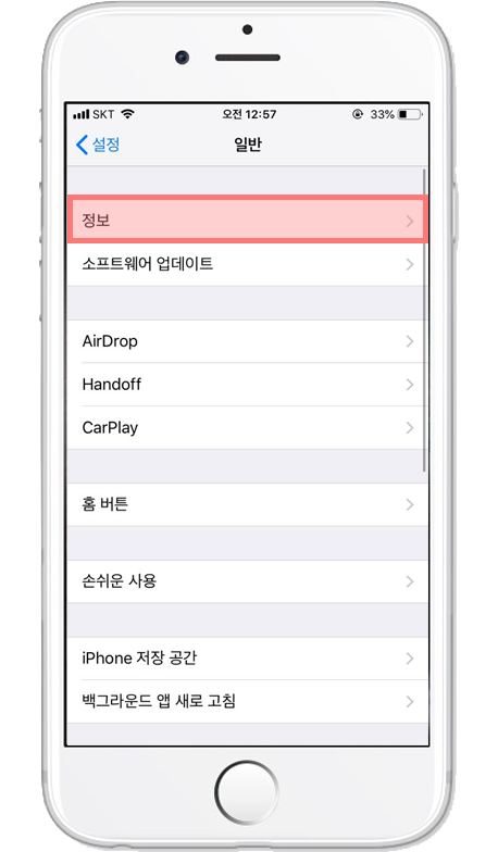 ▲ 일반 메뉴에서 맨 위쪽에 위치한 [정보] 탭을 눌러줍니다.