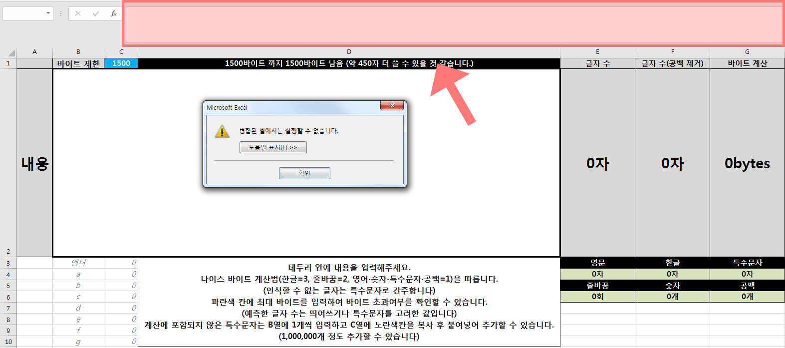 나이스 바이트 계산기의 셀을 클릭후 붙여넣기를 하면 이런 오류가 발생할수 있습니다. 이런 경우에는 상단에 위치한 입력란에 붙여넣기를 해주시면 간단하게 붙여넣기를 완료할 수 있습니다. 참고해주세요 ▼