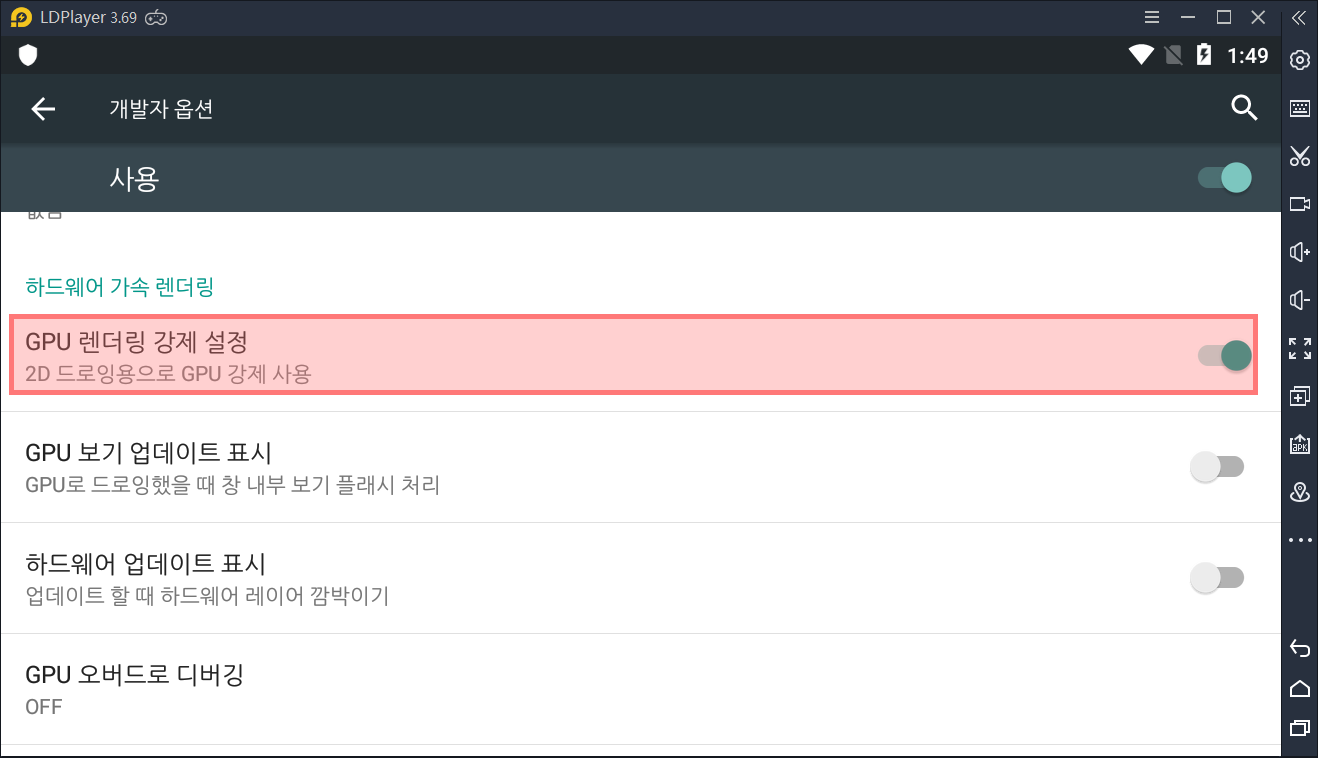 LD플레이어 최적화 방법 - 개발자옵션설정