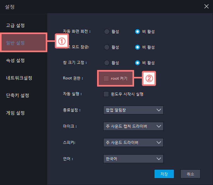 LD플레이어 최적화 다음설정은 왼쪽에 [일반 설정]메뉴를 클릭해주신 다음, Root 권한 항목에 있는 [root 켜기] 체크박스가 체크되어있는 것을 체크해제 해주세요. 이 설정은 크게 최적화에 도움이 되지 않지만, 이 기능을 사용하시는 분들은 켜두셔도 무방합니다.