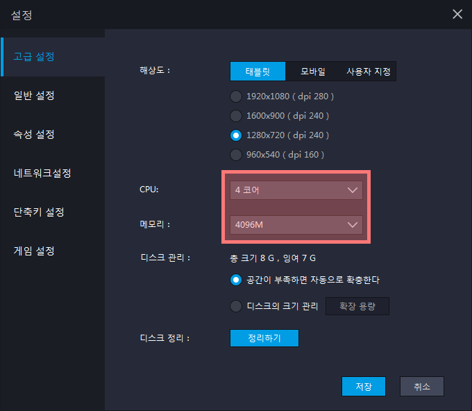 LD플레이어 최적화 하기위해 설정창을 열면, 해상도, CPU, 메모리등등 설정을 하실수가 있습니다. 해상도는 낮게쓰실수록 화질을 떨어지지만, 렉을 유발하시는 것을 방지할 수 있고, CPU는 자신의 컴퓨터 사양에 맞춰서 2코어부터 4코어까지 설정해주시고, 메모리는 4기가로 설정해주세요.