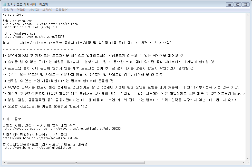 ▼ mkz 다운로드 이후에 들어있는 텍스트 문서중에서 개발자분이 알려주시는 악성코드 감염 예방 방법이므로, 한번씩 읽어서 숙지하는 것도 나쁘지 않을 것 같네요.
