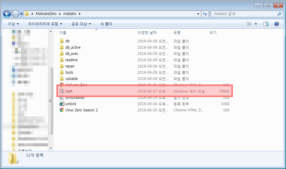 ▼ 압축해제를 완료했으면 mkz 다운로드는 끝이 났고 파일을 실행시켜봅시다. malzero 폴더를 더블 클릭해주세요.