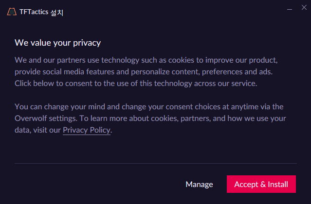▼ 그러고 영어로된 약관이 나옵니다. 기본적인 개인정보 약관이므로 오른쪽 아래 Accept & Install 버튼을 클릭해주세요.