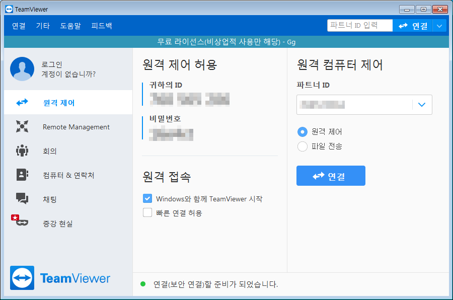 ▼ 팀뷰어14 다운로드는 1분 채 되지 않아서 완료가 됩니다. 팀뷰어 사용방법은 되게 간단합니다. 원격 컴퓨터 제어를 하시고 싶으시다면 파트너ID를 치신후 [연결] 버튼을 클릭하고, 비밀번호를 입력하시면 되고, 원격 제어 허용을 하시려면 상대방에게 자신의 ID와 비밀번호를 알려주시면 됩니다.